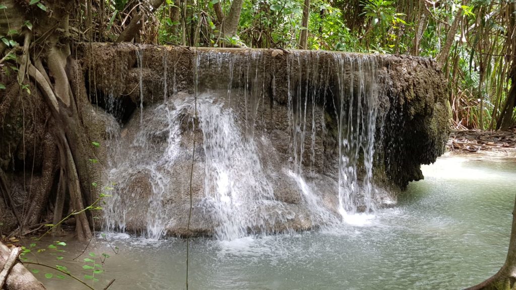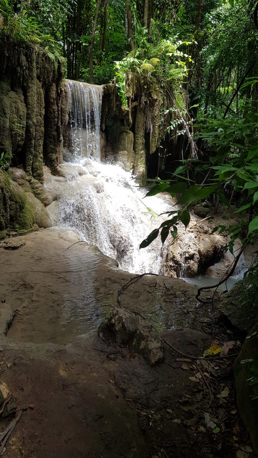 Gerard groet jullie vanaf level 7 bij de Erawan watervallen in Thailand.