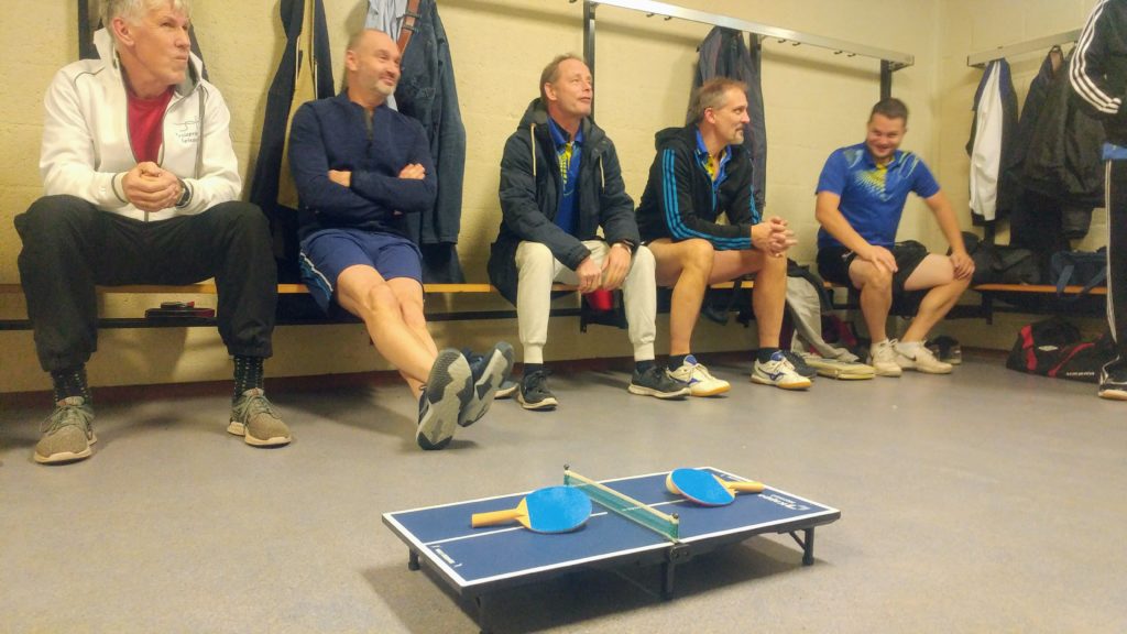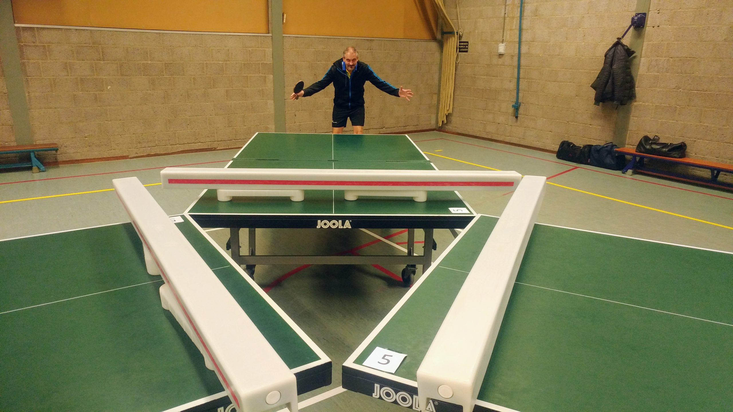 Hier houdt het een beetje op voor wat betreft het wedstrijdverslag, want zodra de punten moesten worden geteld ontaardde de avond in een chaos: niemand wist wie wanneer een punt had gescoord en ten koste van wie, aan elke tafel werden weer andere en vaak eigen regels bedacht. Zodra iemand het waagde om aan stand-in Pythagoras Mark te vragen hoe het zat, antwoordde die: “Ja, je kan toch rekenen?”. Kortom een waar handicaptoernooi in de allerbeste Overhees-traditie: geweldig! Los van die puntentelling leverde deze speelwijze vaak geweldige en ook hilarische rally’s op, het was fantastisch om een keertje zo te spelen.