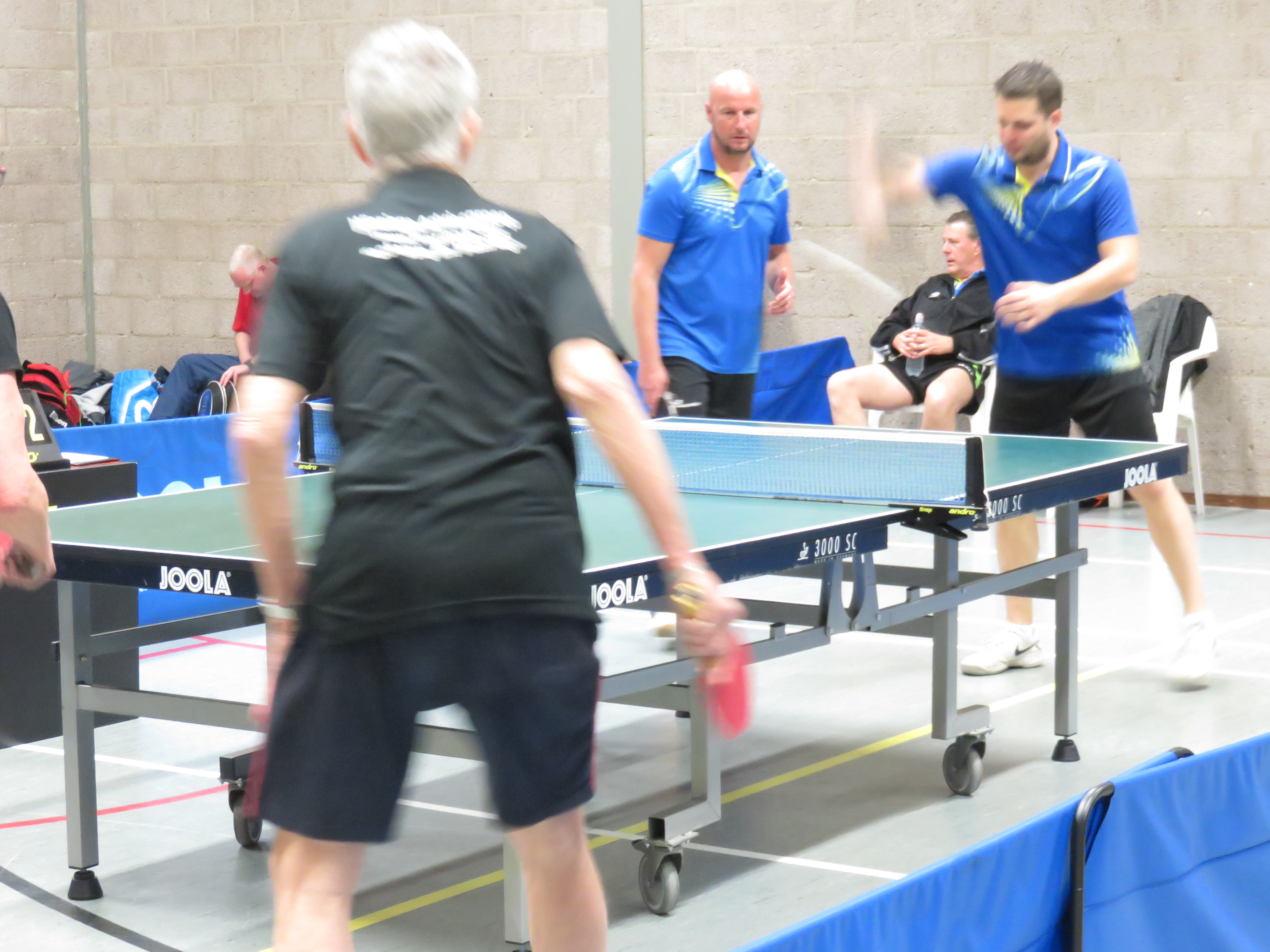 Minder voorspoedig verloopt de campagne van Overhees 2. Het incasseerde opnieuw een verlies, 7-3 dit keer. Het begin was prima: Ted won eenvoudig en Leo met iets meer moeite van Danny van de Tol en Frank en Ted wonnen zelfs de dubbel, wat team 2 alweer zeven wedstrijden geleden voor het laatst presteerde. Stand halverwege dus 2-3 in het voordeel van Overhees. Maar dan: Cees van Schaik en Arjan van der Linden waren te sterk voor alle Overhezers en het enige punt dat team 2 redelijkerwijs nog kon halen, Frank tegen Danny, ging ook verloren. Frank begon sterk, kwam via een gemakkelijke 4-11 en een al wat lastiger 10-12 op 0-2 en bereikte in de derde game een matchpoint, maar hij wist dit niet te verzilveren en Danny kwam via 14-12 terug op 1-2. Vanaf dat moment was Frank niet meer aan het tafeltennissen, maar aan het worstelen. Hij had de hoog opstuitende onderhandse backhandreturns van Danny af moeten slaan en de steeds beter lopende forehand van Danny moeten vermijden, maar hij was volledig de kluts kwijt, te afwachtend en de spaarzame keren dat hij het initiatief nam te onnauwkeurig. Danny brak via 11-7 en 11-6 door naar de winst. Geen beste beurt voor Frank, die meteen daarna nog een domper te verwerken kreeg: als bob mag hij na afloop bij uitwedstrijden graag een 0.0% biertje nuttigen, maar dat zit er niet in bij VTV, dat aan de weg timmert met een dameseredivisieteam en daar terecht trots op is, maar anno 2019 toch eigenlijk geen nee meer kan verkopen als iemand om een alcoholvrij pilsje vraagt. Nou ja, dan maar een radler of iets anders waarvan je net zo’n vieze smaak in de mond krijgt als van de 7-3 nederlaag. Team 2 gaat het ongelooflijk moeilijk krijgen dit seizoen: het staat nog vierde, maar de concurrentie heeft het ijzersterke UTTC (28 uit 3!) al gehad en wij nog niet…