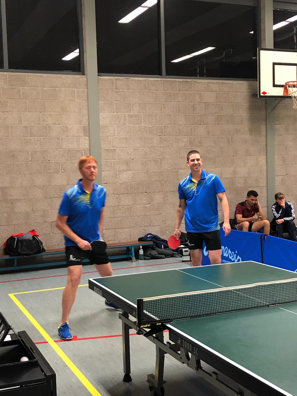 Ruben, in Woerden nog afwezig, opende zoals meestal het bal en boekte gelijk een eenvoudige overwinning op Dick Nobel. Ook Willem van de Heuvel en Kees van Kats waren kansloos tegen Ruben, hoewel Willem nog wel de eerste game in 9-11 wist te pakken van Ruben. Maar verder geen geintjes: drie punten voor Overhees dankzij Ruben.