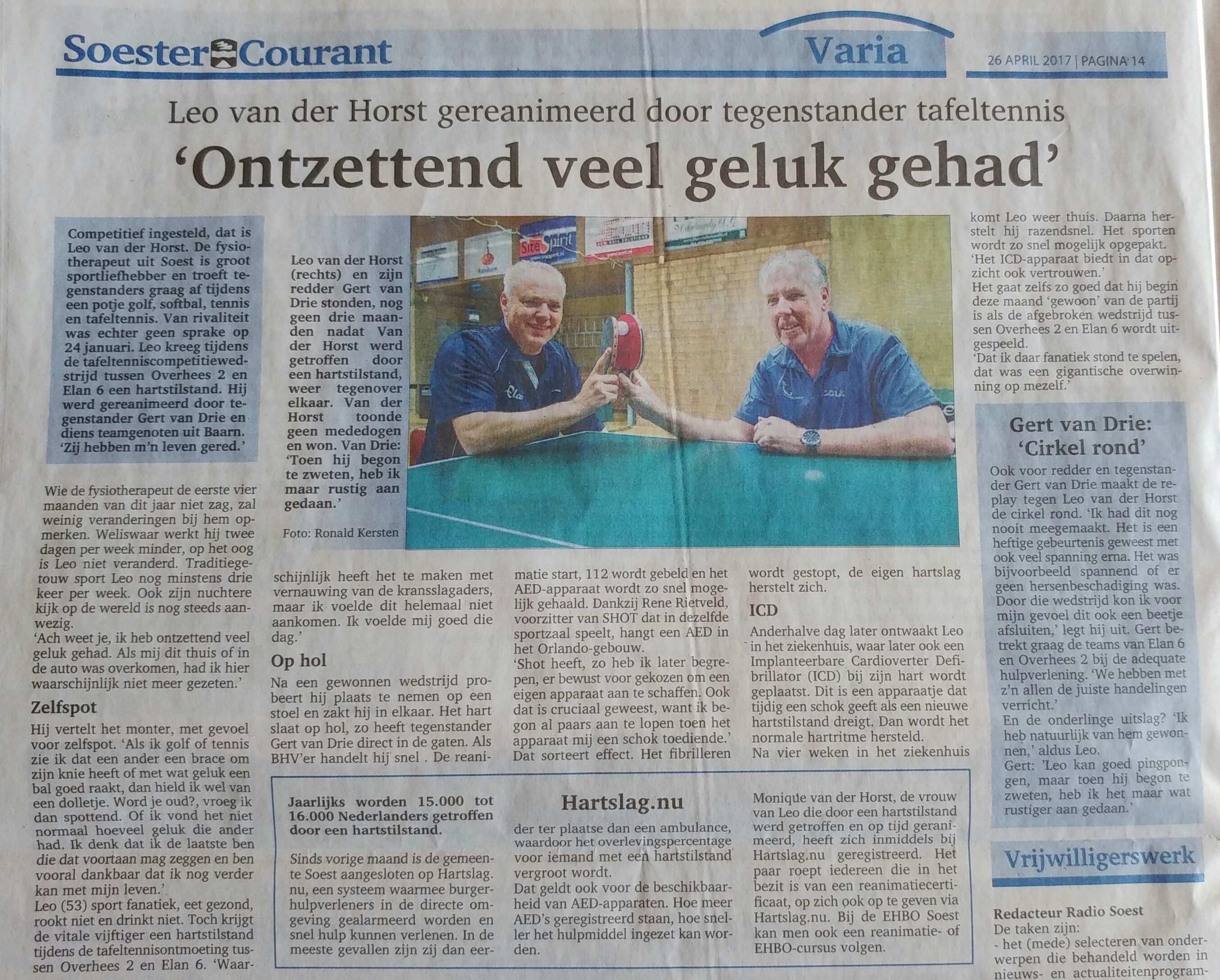 Deze week staat er een artikel over Leo en Gert van Drie van Elan in de Soester Courant. Het gaat over Leo’s reanimatie van eind januari. Leo is niet helemaal tevreden met de inhoud van het artikel.