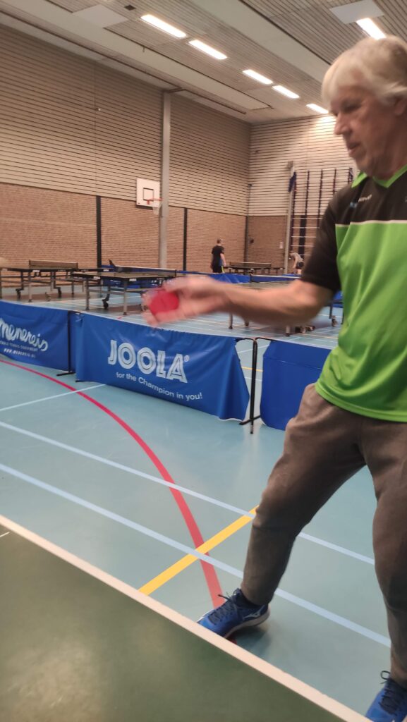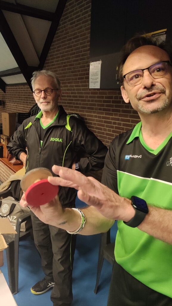 Dat wilde echter niet zeggen dat spelen onmogelijk was, integendeel. Er bleek prima mee te pingpongen, letterlijk: het geluid dat de Twinspin® produceert maakt direct duidelijk waar die bijnaam van het tafeltennissen vandaan komt. De techniek diende wel te worden aangepast. Niet spinnen, geen effect willen geven, gewoon rechttoe rechtaan was het devies. Een uitvinding, zo’n Twinspin®! Hopelijk hebben Daan en Mark er octrooi op aangevraagd, want dit kon wel eens heel groot gaan worden! Andere clubs die meelezen: de Twinspin® mag absoluut niet gekopieerd worden! Wil je je eigen Twinspin® Handicaptoernooi organiseren, vraag dan een licentie aan bij Overhees. Kost wel wat consumptiebonnen. Of leen een set Twinspins® bij ons, succes gegarandeerd.