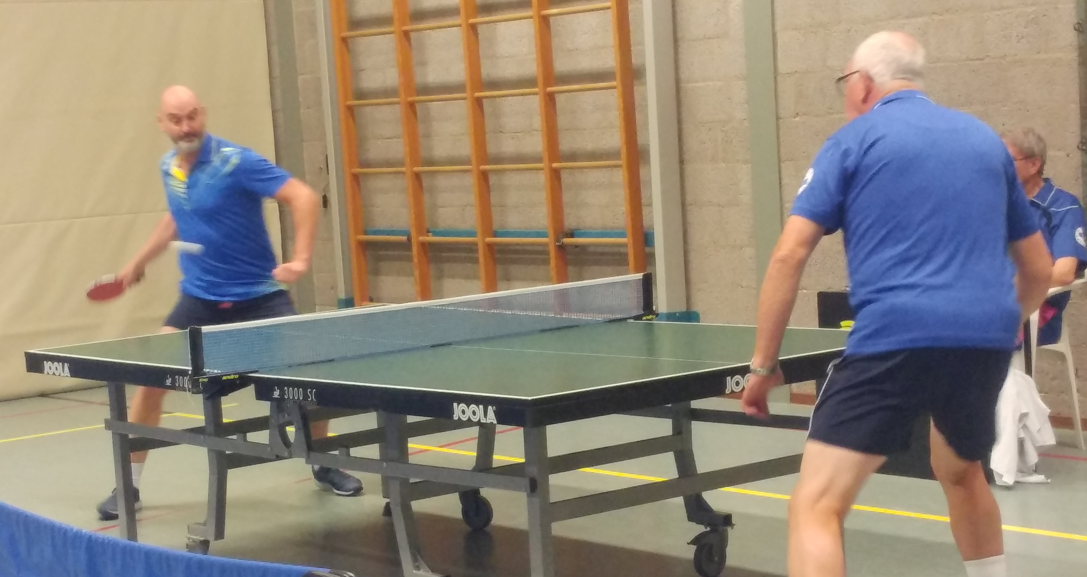 Overhees 3 speelde afgelopen dinsdag thuis tegen LTTC 6. Het derde revancheerde zich voor de toch wat teleurstellende start van vorige week, op grandioze wijze: 10-0! Rik, Maurice en Jan waren niet te stoppen. Rik, die zich vorige week ook al onderscheidde door twee van de drie punten voor team 3 binnen te halen, is in grote vorm. Hij leverde geen enkele game in! Maurice herstelde volledig van de uitglijder van vorige week; twee van de drie zeges boekte hij op tegenstanders die op papier sterker zijn, zeer knap gedaan. Maar het opvallendst was Jan. Niet eens om zijn prestatie, maar om zijn outfit. Jan droeg het officiële Overhees-shirt! Gauw een foto gemaakt natuurlijk, zoiets zie je niet vaak. De prestatie was eveneens oké: driemaal winst, al liet hij wel Jan Koopman terugkomen van een 2-0 achterstand. Het smetje werd in de vijfde game snel weggewerkt. Een fantastische overwinning waarmee team 3 flink stijgt in het klassement.