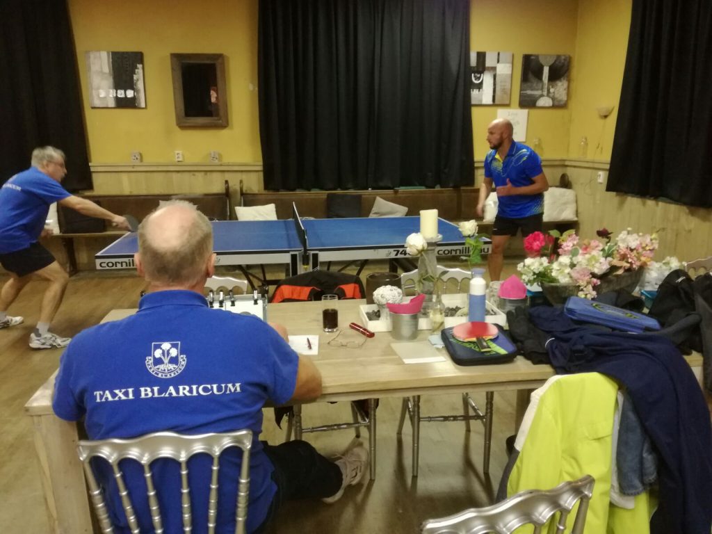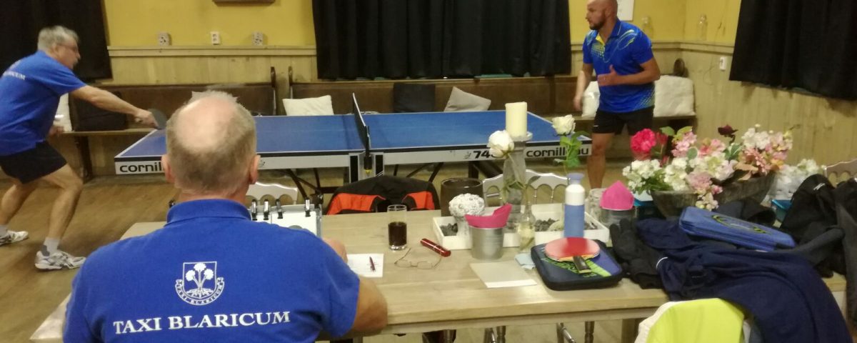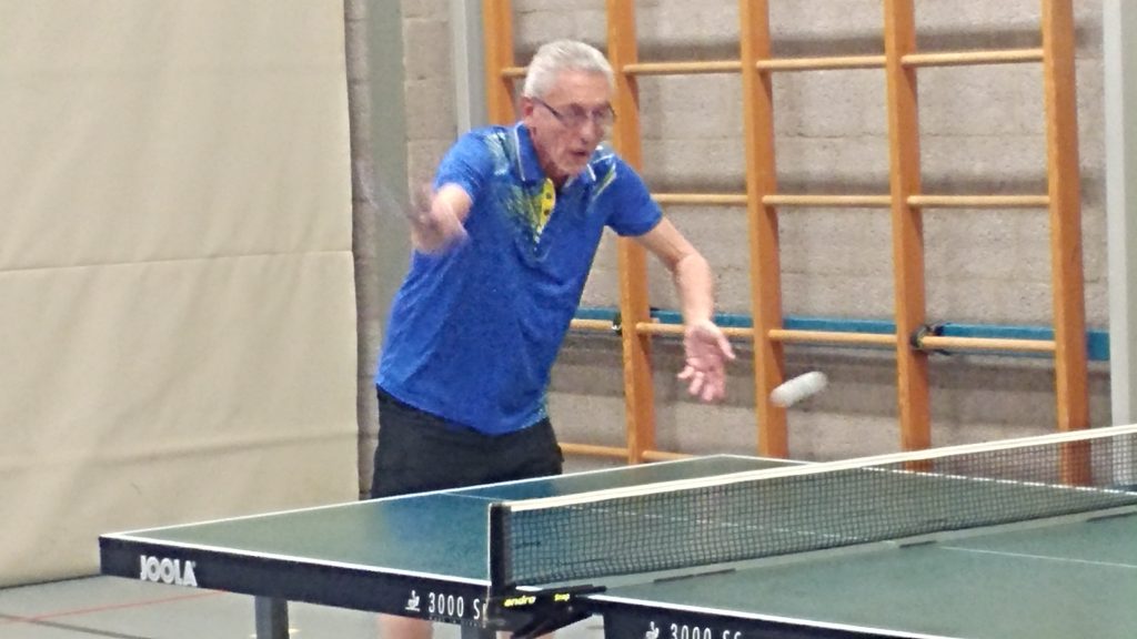 Team 2 speelde deze week zijn eerste wedstrijd, de tegenstander heette TVS 3 uit Scherpenzeel. Frank, Ted en Peter schoten goed uit de startblokken door alledrie hun eerste pot te winnen. De overwinning van Peter was een regelrechte stunt: Kees de Koning (met ‘dood’/’rood’ rubber dat meer roestbruin is dan rood – mag dat wel van de ITTF?) kreeg geen vat op de backhandjes van Peter, die via 13-11, 7-11, 11-6 en 11-7 tientallen ratingpunten omhoogschoot. Ted en Frank waren allebei kansloos tegen Kees, wat de prestatie van Peter extra glans gaf.