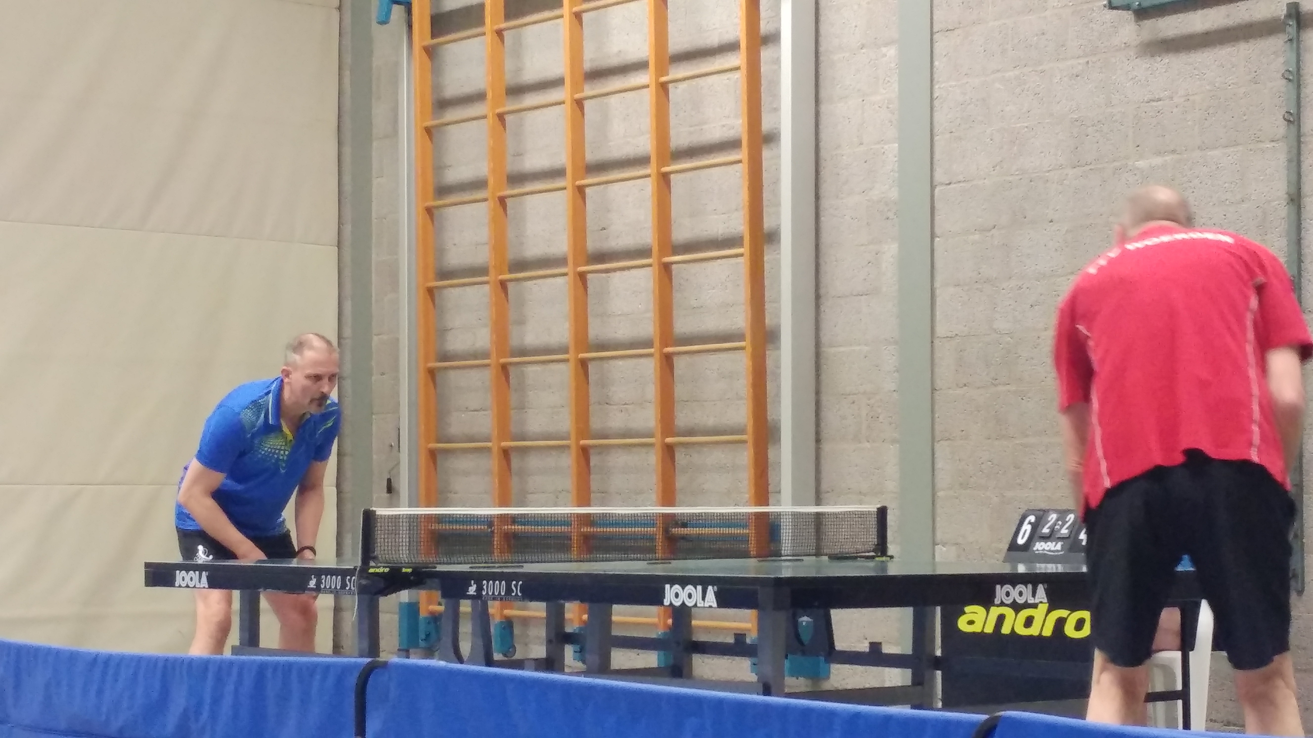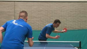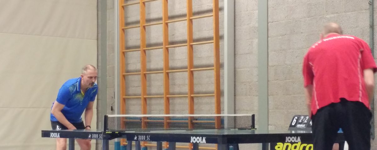 Team 2 zal de sfeer tijdens de uitwedstrijd tegen WIK 2 niet licht vergeten. Na een kwartiertje pingpong gingen alle remmen los. Dat wil zeggen: aan de andere kant van de zaalscheiding. Er was een flinke geluidsinstallatie neergezet en de volumeknop ging vol open. “Wat is dat nou?”, aldus Ted, net bezig aan zijn eerste pot. Disco? Houseparty? Concert? Nee: volleyballers die aan het inspelen zijn. Kan niet zonder een stukkie dance. Daarna: volleybalwedstrijd. Na elk punt een hels kabaal, gejuich, gezang en een echte trommelaar die er echt zin in had (en zijn allergrootste trommel had meegesleept). Supporters? Mis: het waren de volleyballers zelf (althans: de wisselspelers) die de kelen schor zongen. Echt gezellig (ook na afloop in de kantine: carnavalsmuziek!), maar als uitspelende tafeltennisser is het ‘effe wennen’.