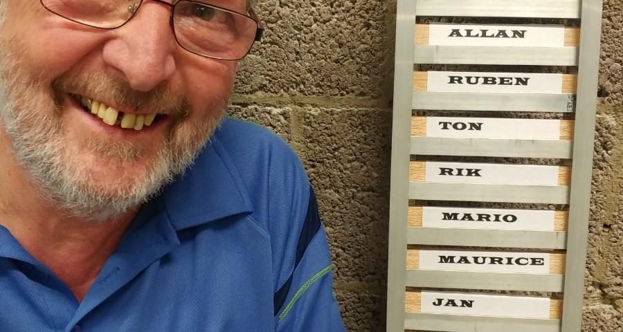 Achter Daan vinden we Rik. Hij is als gloednieuw lid een beetje gematst en hoefde niet onderaan te beginnen, maar is door de organisatie vorige week een startplek in de subtop gegund, op 4. Rik is zelf in de aanval gegaan, maar werd ook door anderen aangevallen. Het resultaat is dat hij zich staande heeft weten te houden op 4. En dat is knap, want achter hem vinden we allemaal zakkers: Allan, Ton, Mario, Maurice en Jan verloren drie plaatsen.