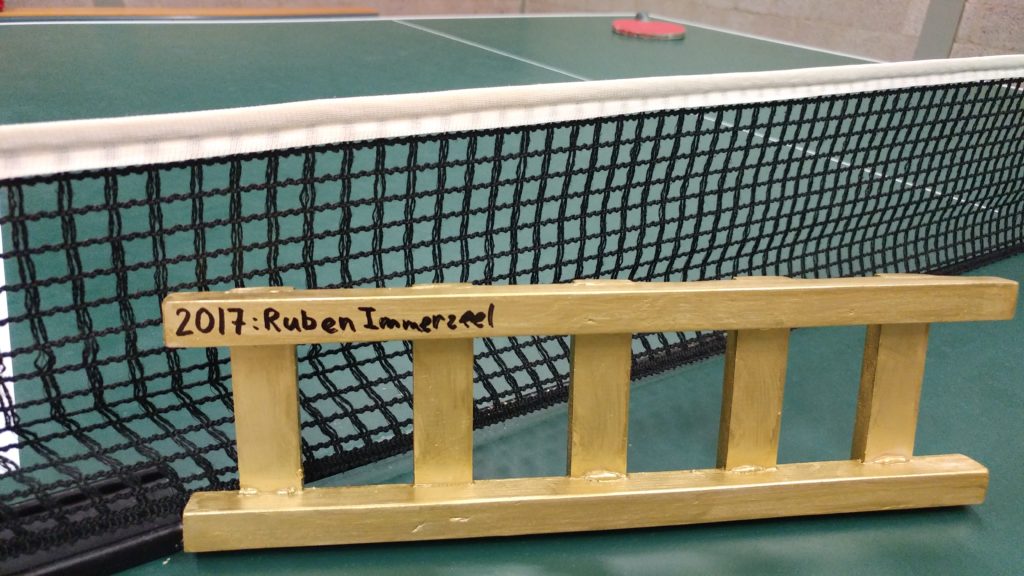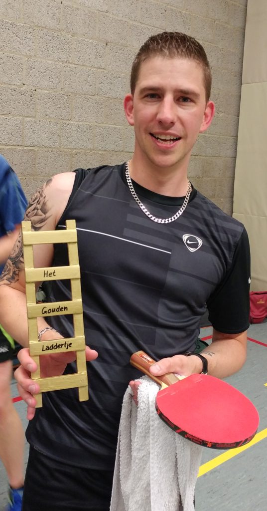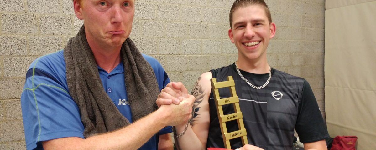 Na het clubkampioenschap heeft Ruben ook de laddercompetitie gewonnen. In een leuke finale tegen Gerard zegevierde hij met 3-1, waardoor hij de allereerste winnaar van de nieuwe wisseltrofee is geworden: Het Gouden Laddertje!