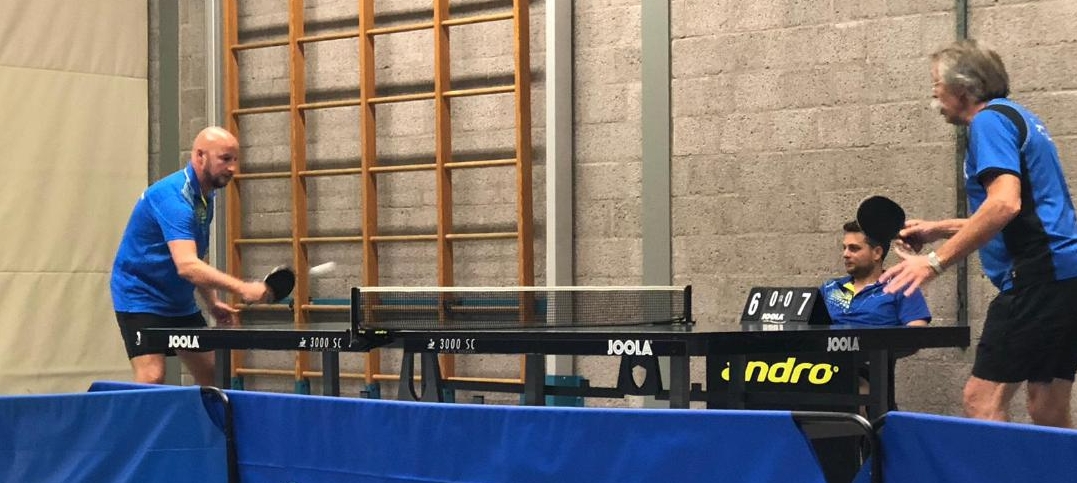 Drie dagen later werd er een nog mindere uitslag neergezet uit bij Gispen 7: 9-1. En eigenlijk zat er ook niet meer in. Ja, toen Rik tegen Johan de Mari op 0-2 voor kwam via twee keer 2-11 leek het er niet op dat dat punt nog naar de Culemborgers zou gaan, maar Johan wist het duel te kantelen: 11-8, 11-6, 11-7, waarmee Rik uiteindelijk geen aanspraak kon maken op de winst. Wel was het Rik die de eer redde voor Overhees door Henk van Kessel in vieren te pakken. Maar meer dan dat ene schamele puntje zat er niet in; Daan wist niet in de buurt van een zege te komen en Maurice won zelfs geen een game. Ook de dubbel verloren Rik en Daan kansloos.
