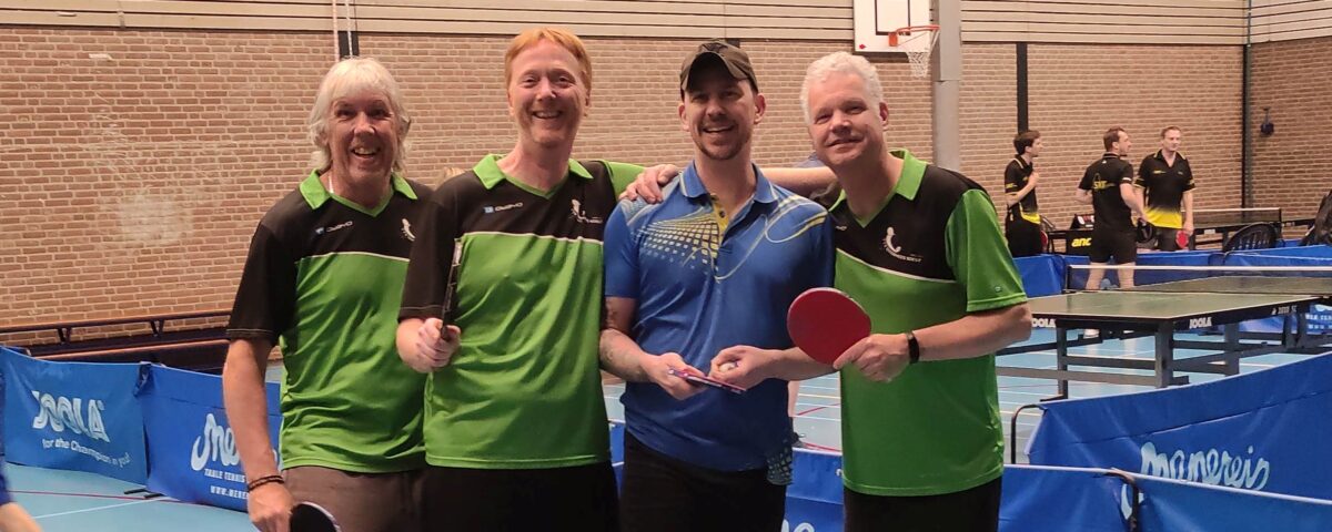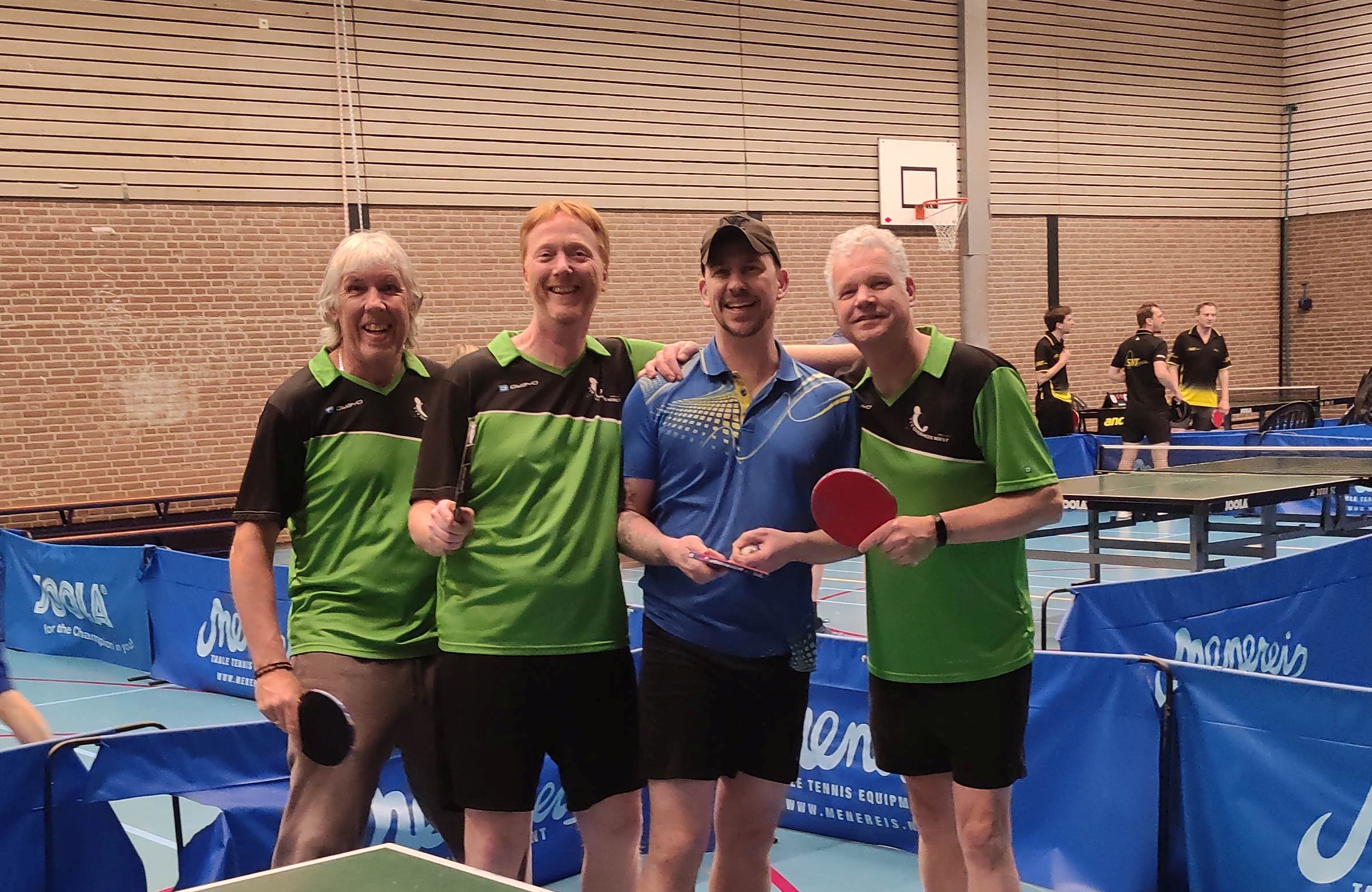 De kampioenen van team 1: v.l.n.r. Leo, Gerard, Ruben, Frank. Niet op de foto: Mark