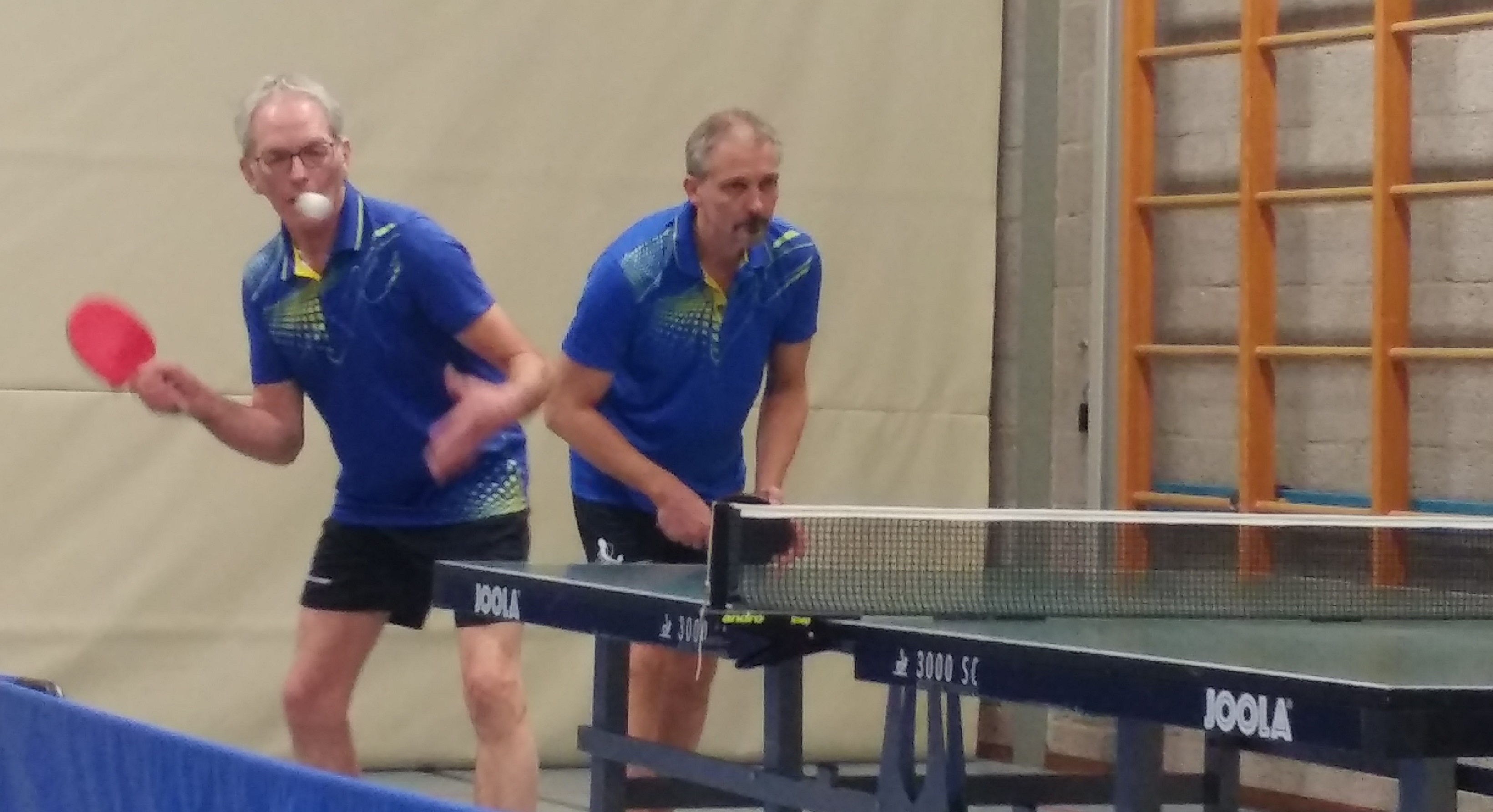 SVE 14 is geen gemakkelijke tegenstander. De Utrechters speelden vorig seizoen nog in de 5e klasse tegen ons tweede team. Ze werden weliswaar laatste, maar dat lag zeker niet aan Nico Plomp en Jos van der Veen en zij waren erbij deze week tegen Overhees 3. Maurice en Daan hadden geen vat op de lepe effectballetjes van Nico en de snelle forehand-aanval van Jos en ook in de dubbel viel er voor Daan en Maurice geen eer te behalen: Jos en Nico gingen er in drie games overheen.