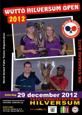 – En weer een week later, op zaterdag 29 december het WUTTO Hilversum Open 2012, een toernooi waaraan je alleen met een plankje mag meedoen onder het motto: tafeltennis zoals het bedoeld is. Dus snelle rubbers thuislaten en terug naar de basis. Meer info.