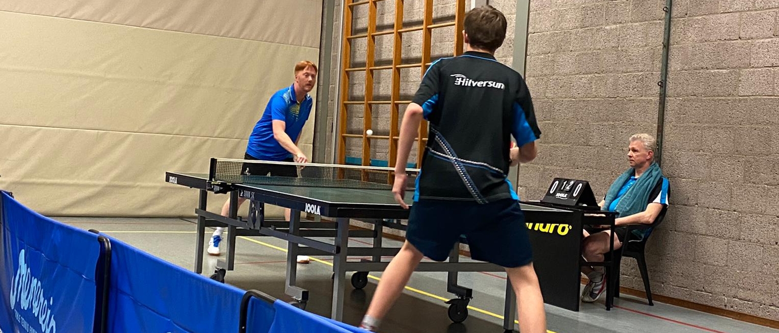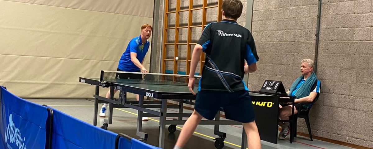 Team 1 deelde eerlijk de punten met Hilversum 8. Beide teams speelden met een invaller: Ed Stevens aan Hilversummer zijde (die echter in het dagelijks leven ook 2e klasser is) en Gerard bij Overhees. Gerard was er vroeg bij om dé stunt van het seizoen uit te halen tot nu toe: in zijn eerste pot ging hij doodsimpel met 3-0 winnen van Frank ten Elsen, die een rating heeft (inmiddels had) van 314 (!!!) punten meer dan Gerard. Hoe kan partij tussen twee tafeltennissers met meer dan 300 punten ratingverschil met 3-0 gewonnen worden door de underdog? Geen idee, maar laat het een inspiratie (of een waarschuwing) zijn voor ons allemaal: dat kán dus gewoon! Tafeltennis is een mooie sport, gefeliciteerd Gerard met deze prestatie. Daan liet ons vorig en dit seizoen al zien dat 300 punten verschil overbrugbaar zijn, maar dat werd in vier of vijf games duidelijk. Deze 3-0 slaat alles, hier gaat voorlopig niemand overheen. Bijna had Gerard zelfs twéé potjes gewonnen, ware het niet dat Bjarne Olofsen via 9-11 in de vijfde het vege lijf net wist te redden. Nee, dan Gerben. Die weet hoe je vijfgamers naar je toe trekt: Bjarne en Frank werden allebei met 3-2 geklopt, waardoor Gerben nu zeven van zijn acht winstpotten in vijf games besliste. Zeer opmerkelijk, maar een puik resultaat en Gerben heeft dan ook bij deze een nieuwe bijnaam (copyright Gerard): Beast Of Five! Verliest Gerben dan nooit in vijven? Toch wel, want Ed liet zich niet foppen: 2-3. Jammer, maar het kan niet altijd feest zijn. Dat ervaart ook Ruben, die logischerwijs even moet wennen aan het feit dat de tegenstand in de 2e klasse feller is dan hij gewend is. Het is hem nog niet gelukt om vanuit achterstand alsnog een wedstrijd te winnen, maar hij pakte wel weer een zege: 3-0 tegen Bjarne. En met Gerben was het ook weer raak in de dubbel, knap gedaan. Uitslag 5-5, Overhees 1 draait netjes mee in de middenmoot.
