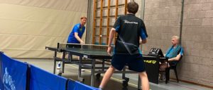 Maandag al speelde team 4 in dezelfde zaal als het derde, maar wel tegen een andere club: TOVO 2. In de 6e klasse E is voor onze helden van het vierde weinig kruid gewassen tegen de meeste teams, maar tegen TOVO leek ‘een resultaat’ haalbaar. Met die inzet werd dan ook de strijd aangegaan en hoewel er inderdaad sprake was van een strijd, werd er wel nipt verloren: 6-4. Het was Daan die zich revancheerde voor zijn valse start in de competitie. Met drie overwinningen was hij de king of the venue. Joop van Vliet, Wim van Beek en Wim van de Heyde hadden geen antwoord op zijn initiatiefrijke spel, al waren er dan twee keer vijf games nodig. Allan moest ook twee keer vijf games aan de bak, maar bij hem lukte het twee keer niet. Jammer, maar van Wim van de Heyde werd vol overtuiging met 0-3 gewonnen, waardoor Allan ondanks winst in 7 van de 13 games die hij de avond speelde toch maar één keer kon worden gefeliciteerd. Een felicitatie waarop Xavier vooralsnog hoopvol wacht, al was hij er dit keer wel héél dicht bij, tegen dezelfde Wim. Na een 1-0 achterstand beleefde Xavier een opleving die hem op een 1-2 voorsprong bracht en in de vierde game enorm dicht bij de winst. Maar toen die vierde met 12-10 toch nog net de mist in ging boog Xavier alsnog het hoofd: 11-6 in de vijfde. Het komt echt Xavier, het komt echt. Volgende keer jouw beurt! Omdat TOVO ook de dubbel won, ging de pot nipt verloren met 6-4. Maar zoals altijd bezien we de zaken vanuit de zonnige kant: met die vier punten heeft team 4 in één klap het totaalsaldo verdubbeld. Dat kan verder helemaal niemand zeggen, dus: van harte gefeliciteerd heren!