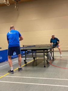 Dat geldt ook voor team 2, al blijft het linke soep in de 4e klasse C: de nummers 2 t/m 5 zitten zo dicht op elkaar dat je moet uitkijken niet per ongeluk op een degradatieplek te belanden. De 6-4 overwinning op concurrent ATC Almere 6 was daarom lekker en belangrijk. Ook hier een paar grote verrassingen: Stefan stuntte halverwege de avond door in vijf games Benito Lieuw A Soe te kloppen, goed voor een sprong van 32 ELO-punten: heel lekker Steef, top gedaan! Even later wist ook Jan Benito te verslaan, wat op zich al opvallend was, maar vooral de speelse wijze waarop: 11-4, 11-1, 11-5. Revanche voor zijn mindere wedstrijd daarvoor, tegen Gerard van Straten, die hij tegen de verwachtingen in verloor en waartegen ook Stefan het een tikkeltje onverwacht niet redde. En dan Frank: die wist ook een wedstrijd tegen een lager genoteerde speler te verprutsen. Het zat hem niet mee tegen angstgegner Daniëlle Smit en hij ging allengs verkrampter spelen. Voor de derde keer op rij verloor hij van haar, terwijl ze op papier duidelijk de mindere speler is. Het is een raar spelletje, dat pingpong… Gelukkig wonnen Jan en Stefan wel van haar, wist Frank wel als enige van Gerard te winnen en sleepten Frank en Jan ook de dubbel overtuigend binnen, waardoor Overhees won met 6-4. Met 20 uit 4 doet team 2 het absoluut niet slecht, maar het blijft uitkijken in die poule. Wat wel fijn is: team 2 heeft als enige nog niet tegen hekkensluiter Good Luck 1 gespeeld.