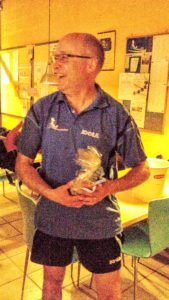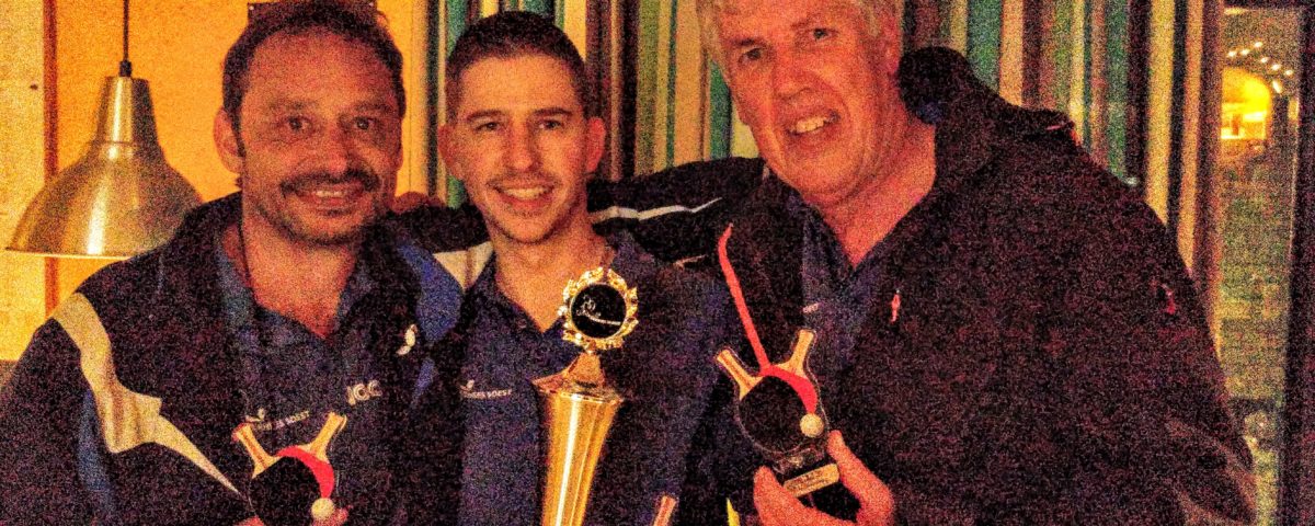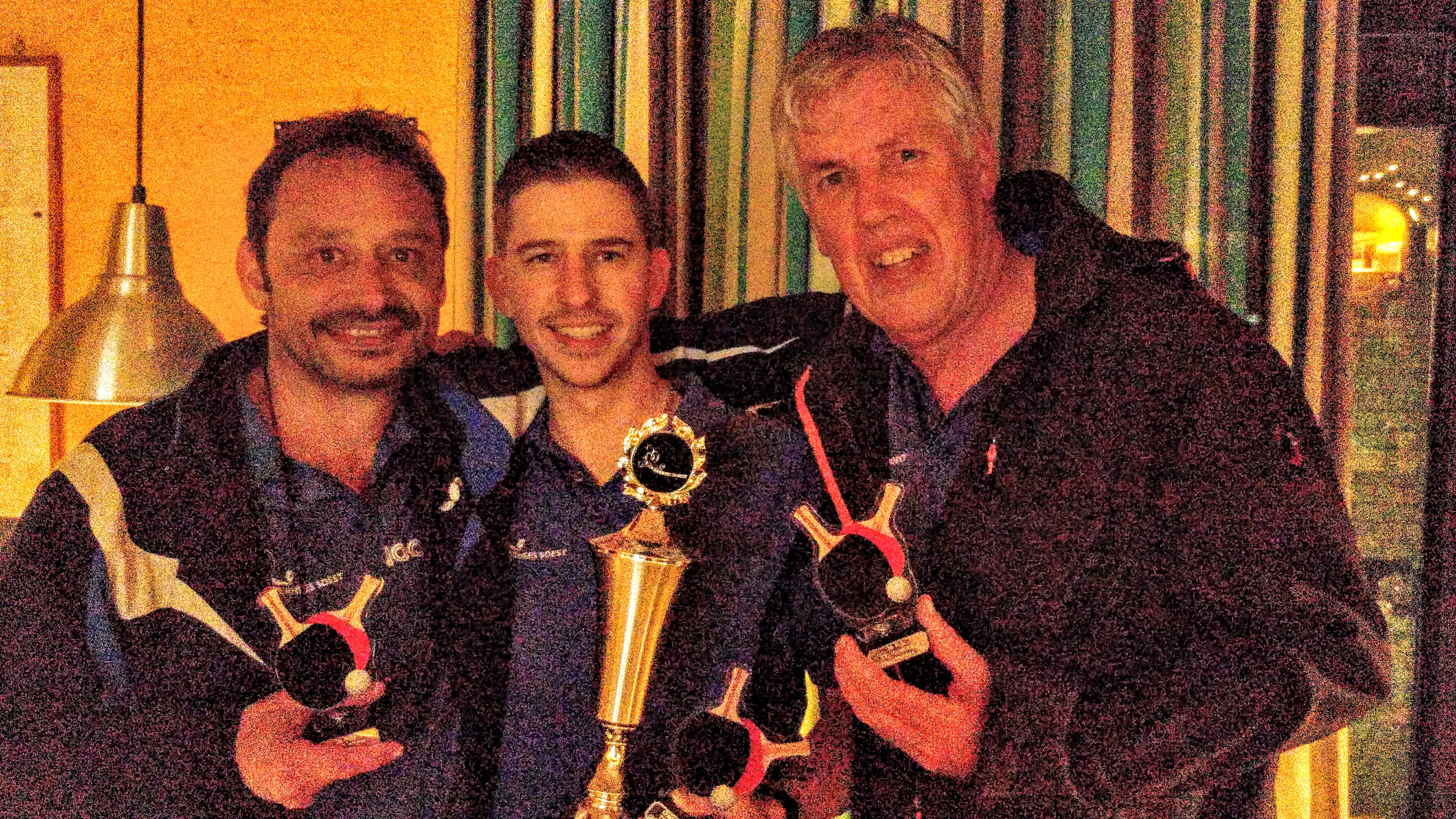 En wat te denken van de man aan de rechterkant van het ereschavot. Leo rammelde vorig jaar al aan de poort van de elite. Hij miste toen op een haar na de halve finales, maar heeft zich nu echt geschaard bij de beste spelers van de club. Hij versloeg teamgenoten Peter en Frank en bleef ook overeind tegen Gerard en Jos. Mario wist hem heel knap een punt afhandig te maken, maar aan het eind van de rit had Leo genoeg punten verzameld voor het brons. Dat Leo dit heeft gepresteerd is zeker na wat hem begin dit jaar is overkomen ongelooflijk. Het is de laatste jaren geen enkele speler van team 2 gelukt zich in de prijzen te spelen. Bravo!
