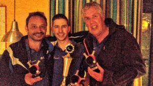 Zo heerste er tevredenheid over het verloop van het toernooi, dat weer uitstekend was georganiseerd door Mark en Daan: enorm bedankt! Ook dank aan Lisa voor de heerlijke lekkernijen, aan Jos en de rest van het bestuur voor de consumptiebonnen, aan Shot voor het beschikbaar stellen van hun zaalhelft, aan barman Rex voor het iets langer open houden van de kantine en aan Ilse, Bart en Ted (hartelijk welkom!) voor de publieke belangstelling. Volgend jaar nieuwe rondes nieuwe kansen, met hopelijk ook degenen die er dit jaar om verschillende geldige redenen niet bij konden zijn.