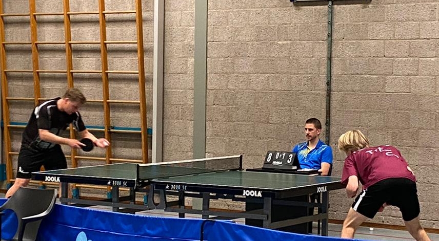 Het was in elk geval een zeer bijzondere week, want voor het eerst in de geschiedenis van de club speelden we een wedstrijd in de 2e klasse. En de mannen van team 1 deden het goed, ze wonnen met 7-3 thuis van het jeugdige HTTC 2. Gerben deed waarvoor we hem hebben gecontracteerd: ons verder brengen in de vaart der tafeltennisvolkeren. Hij wees de weg met drie overwinningen, al waren tegen Sven Huiting en Mitch Fokkenrood wel vijf games nodig. Mark zal vast nooit gedacht hebben dat hij na zo’n megacarrière uiteindelijk toch nog in de 2e klasse zou belanden en greep dus zijn kans: hij won bijzonder knap zijn eerste pot met 3-0 van Mitch en pakte laat op de avond zelfs nog een overwinning, met 11-9, 9-11, 11-9, 7-11, 12-10 bleef hij Sven nipt de baas. Klasse! Mark en Gerben wisten ook de dubbel in winst om te zetten: 3-1. Voor Ruben werd het een moeilijke avond. Hij miste ietwat ongelukkig zijn 50e winstpartij op rij in het openingsduel tegen Tycho van der Linde: 13-15, 8-11, 11-7, 12-14. Zo kwam er een einde aan een onvoorstelbare reeks van 49 overwinningen op rij. Goed voor je ontwikkeling zeggen ze dan, maar Ruben denkt er wellicht anders over. Aan het eind van de avond boog hij ook het hoofd voor Mitch. Gelukkig won hij tussendoor nog wel duidelijk van Sven. Uitslag 7-3, een mooi debuut van onze vaandeldragers op dit niveau!