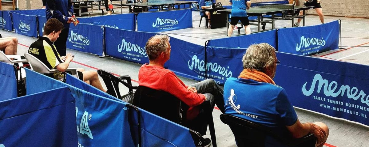 Team 1 ondervond meteen al negatieve gevolgen van het coronavirus: Gerben was lekker vakantie aan het vieren op een Grieks eiland, toen de boel daar op oranje ging, met als advies om bij terugkeer 10 dagen in quarantaine te gaan. Daardoor miste Gerben de competitie-opening en moest Frank uit het tweede worden opgetrommeld. Hij en Jan debuteerden dus zonder ooit hoger dan 4e klasse te hebben gespeeld in de 2e klasse en ook Mark had er nog maar vier avondjes in de 2e klasse op zitten: een team met zo weinig ervaring op dit niveau thuis tegen VEV 1, dat al tientallen jaren 1e en 2e klasse speelt en waarvan een paar spelers langer geleden zelfs op hoofdklasse- en landelijk divisieniveau speelden: een zware dobber zeg maar. Frank genoot, deed zijn stinkende best, haalde zeker zijn niveau en wist als enige Overhezer in elke wedstrijd ministens een game te pakken en tegen Chotto Huang zelfs twee en Jan wist zelfs twee keer op matchpoint te komen tegen Chris van Ouwerkerk, maar beide debutanten capituleerden uiteindelijk toch drie keer. Mark verloor in zijn openingsduel de cruciale derde game tegen Monny van Doorn ongelukkig met 11-13 en wist het niet meer terug te buigen, ook hij boekte geen overwinning. Gevolg: 0-9, een vervelende start. Zonder Ruben in de gelederen en met Gerben in quarantaine was er geen beginnen aan. Gelukkig is laatstgenoemde er de volgende keer weer bij!