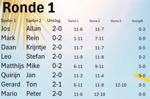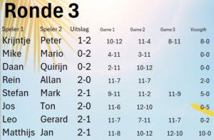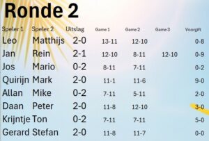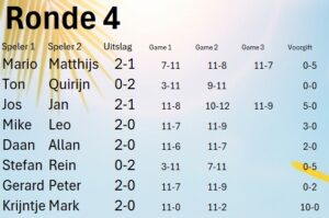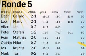 Het was bloedspannend tot het laatst. Bij de start van de laatste wedstrijden gingen Mario en Quirijn nog fier aan kop, beiden hadden tot dan toe al hun potten gewonnen. Rein bevond zich op dat moment nog in de subtop. Echter verloren zowel Mario als Quirijn hun laatste partij, waardoor liefst zeven (!) spelers finishten met vier van de vijf wedstrijden gewonnen. Op gamesaldo pakte Rein nipt de eerste plaats, met Mario als nummer 2 en Mike op de derde plaats. De druiven waren zuur voor Quirijn, die zijn laatste wedstrijd verloor van Mike, waardoor laatstgenoemde op onderling resultaat het brons pakte en Quirijn nét buiten de prijzen viel.